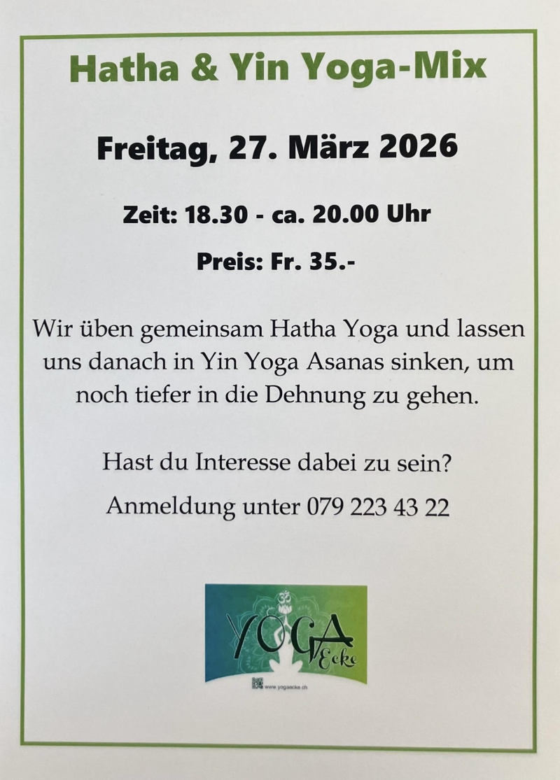 Ende April kannst du dich wieder sinken lassen im restorativen Yin Yoga mit Nathalie, zu den Klängen der Kristallklangschalen von Karin.